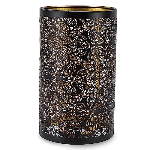 HERCHR Paralume Cilindrico in Metallo, Paralume Decorativo Cilindrico, Scheletro Paralume, Paralume Circolare Cilindrico con Motivo Floreale per Lampada da Tavolo e Lampada da Terra, 12x12x20cm