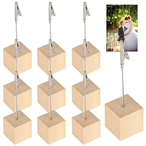 HERCHR 10 Pezzi Memo Clip,Porta Segnaposto Clip per Foto,Memo Foto Titolare Carta Nota Clip,Porta Foto con Supporto di Legno,Porta Memo Portafoto con Supporto di Legno