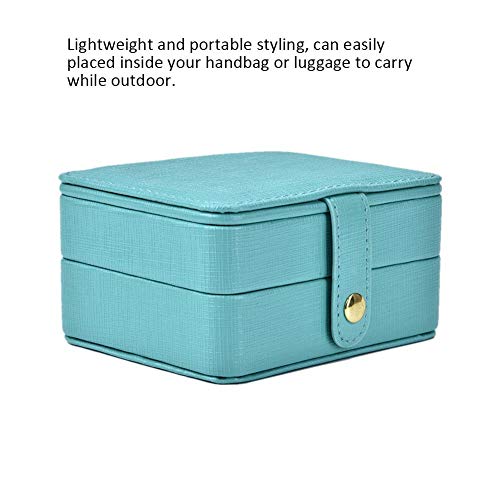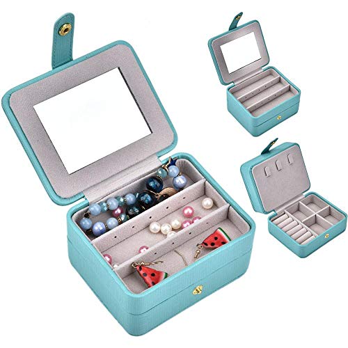 HERCHR Portagioie Piccolo a 2 Strati, Collana in Pelle, Orecchini, Anello, Scatola Organizer, Custodia per Esposizione con Specchio per l'uso Quotidiano in Viaggio(Blu)