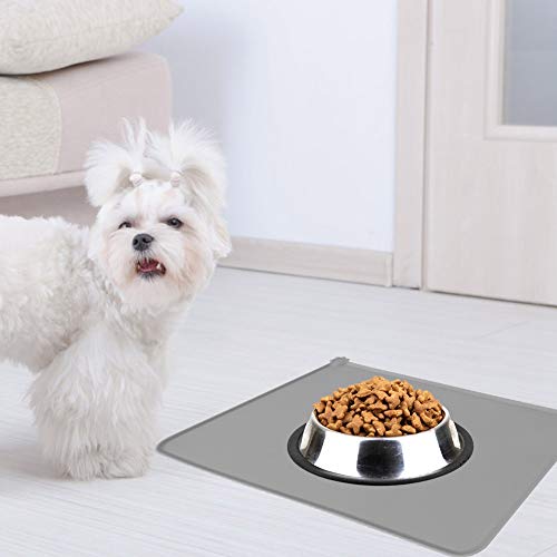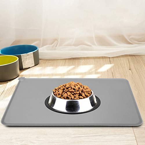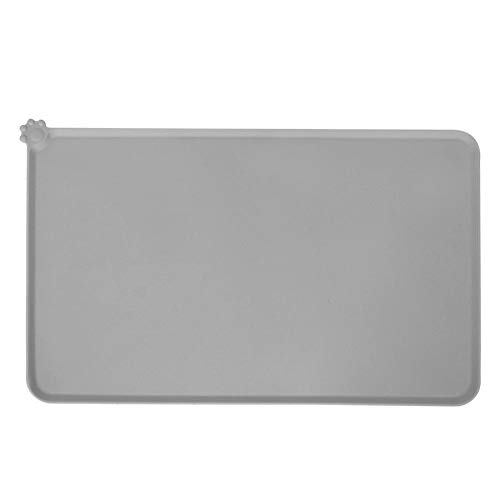 HERCHR Tappetino per Alimenti per Gatti per Cani, Tappetino in Silicone Antiscivolo Impermeabile con Bordo rialzato Tovaglietta per Alimenti per Animali Domestici, 19,1 x 11,8 x 0,2 Pollici(Grigio)