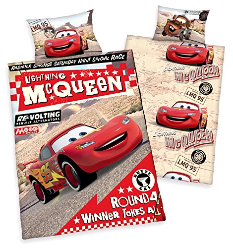 Contenuto: 1x Herding Set di Biancheria da Letto, Disney Cars 3, 1 Federa 40 x 60 cm + 1 Copripiumino 100 x 135 cm, Colore: Multicolore/Rosso