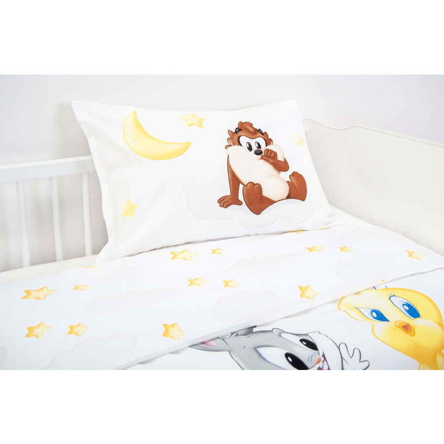 Dettagli del prodotto: Bilanciamento della temperatura Reversibile Particolarmente facile da pulire Traspirante Ideale per l'utilizzo in letti da viaggio, culle e lettini junior Certificato MADE IN GREEN by OEKO TEX® Dimensioni e peso: Dimensioni copripiumino: 135 x 200 cm Dimensioni federa: 80 x 80 cm Materiale e cura: Materiale: 100% cotone Lavabile fino a 40 °C Adatto all'asciugatrice Qualità: Renforcé