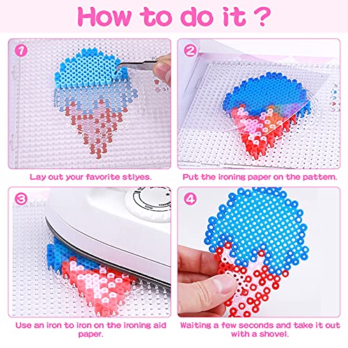 Materiali per la Protezione dell'ambiente e la Sicurezza dei Bambini - la piastra per perline da stiro senza alcuna sostanza nociva o velenosa, protegge completamente la sicurezza dei tuoi bambini. Altri materiali inclusi nel set di perline da stiro per bambini sono sicuri da usare, assicurati che i più piccoli possano giocare con loro.