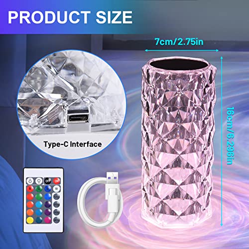 Herefun 500mAH Mini Lampada da Tavolo di Cristallo a LED, Tocco e Telecomando Lampada da Tavolo in Cristallo con 16 Colori e 4 Modalità, Luce Notturna a LED Acrilico per Camera da Letto/Soggiorno