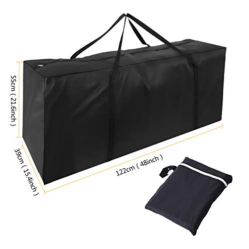 Herefun Borsa per Cuscini da Giardino 210D Oxford, Grande Borsa portaoggetti 122*39*55cm, Borsa di Stoccaggio Letto Lenzuola Cuscini Albero di Natale, Borsa Giardino con Maniglie Impermeabile (Nero-N)