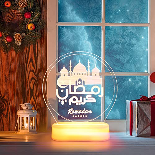 Herefun Lampada 3D per il Ramadan, Lampade Ramadan Mubarak, Luce Notturna Eid Mubarak, Decorazione 3D per Lampada da Tavolo, Lampada Led da Tavolo Lampada Atmosfera per la Decorazione Domestica