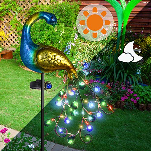 Herefun Luci Solari da Giardino, Pavone Solare Luci di Palo Metallo, Luce Notturna Pavone Prato Lampada, IP44 Esterni Impermeabili Lampada Percorso Palo Luce per Giardino Patio Decorazioni da Giardino