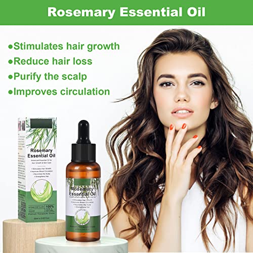 Herefun Olio Essenziale di Rosmarino, 60ml Olio di Rosmarino, Olio di Rosmarino per la Crescita dei Capelli, Olio Essenziale di Rosmarino per Uomini e Donne (60ml)