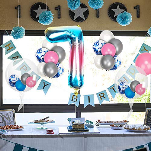 Herefun Palloncino Numero Blu, Gigante Numero 0 1 2 3 4 5 6 7 8 9 16 18 20, Foil Palloncini Numeri 23pcs Compleanno Kit, Numero Palloncini Boy Girl Bambino per Battesimo/Compleanno/Anniversario(7)
