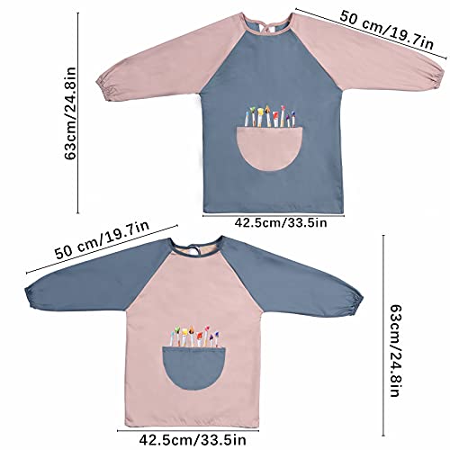 Herefun 2 Pezzi Bambini Grembiule, Grembiuli per Bambini con Tasche, Grembiuli Impermeabili Bambini, Bambini Regolabile Grembiuli Pittura, per Bambini per Pittura, Cucina, Scuola, Casa