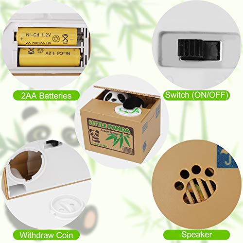 ✓ Design creativo: il salvadanaio Panda è un salvadanaio che può rubare automaticamente le monete quando metti la moneta sul pulsante su e la premi verso il basso.