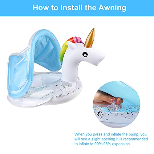 Herefun Salvagente Neonato Unicorno, Piscina Salvagente per bambini 1 anno, Anello di Nuoto con Parasole, Piscina Baby Giocattolo Salvagente Neonato 3 4 5 6 8 mesi Toddler Kids (Unicorno)
