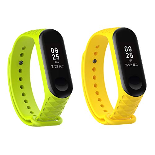HereMore 2PCS Xiaomi Mi Band 3 Polso Cinturino, Morbido Silicone Polso Cintura di Ricambio per Xiaomi Mi Band 3 Polsino Cinghia Inteligente Sostituire Braccialetto, Giallo, Verde