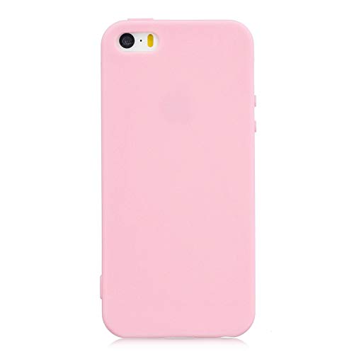 HereMore 5 x Cover iPhone SE, Custodia iPhone 5S / iPhone 5, Custodia Morbido Opaco in Matt Silicone Gel Anti-graffio Antiurto Cover Protezione Case - Blu Scuro, Rosa, Giallo, Blu, Bianca