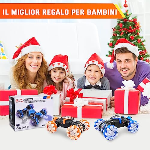 Herenear Macchina Telecomandata, 4WD RC Auto Telecomando 360 Rotazione Acrobatica RC Stunt Car, 1:14 RC Stunt Car con Musica e Luce Batteria 2.4Ghz Sensore Gesto per Bambini da 4 à 12 Ans (Arancione)