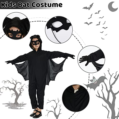 Hereneer Costume da Pipistrello Vampiro, Tuta da Pipistrello Nero per Bambini Costume Ali Bat con Mantello Pipistrello e Guanti Vestito Pipistrello Bambino per Carnevale Cosplay Ragazzi Ragazze (XL)