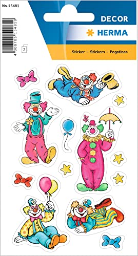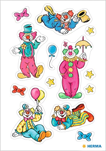HERMA 15481 - Adesivi per bambini, pagliacci (39 adesivi, carta glitterata), autoadesivi, permanenti, per ragazze e ragazzi, colorati