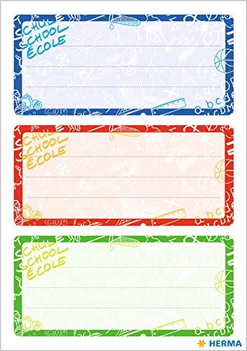 HERMA 5562 Etichette Nome Quaderno per la scuola, motivo: Schooly Doo, formato 7,6 x 3,5 cm, contenuto confezione: 9 Etichette