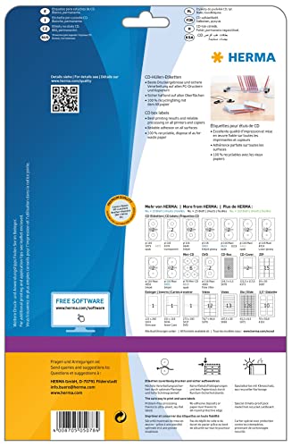 HERMA Etichette per Custodie CD, 114,3 x 5,5 mm, Etichette Adesive A4 per Stampante, 48 Etichette per Foglio, Bianco