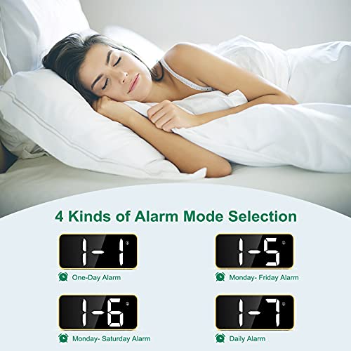Sveglia doppia con funzione Snooze: è possibile impostare due sveglie indipendenti con i pulsanti fisici sul retro della sveglia digitale per un facile utilizzo. Fino a 8 suonerie possono soddisfare le vostre esigenze individuali. Toccando una volta la funzione SNOOZE, la sveglia si fermerà e suonerà di nuovo dopo 5 minuti.