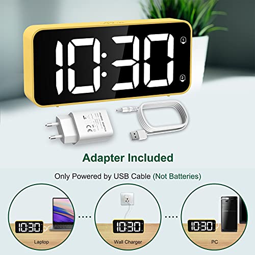 HERMIC Sveglia Digitale, Sveglia da Comodino LED con Adattatore, 2 Allarme, Snooze, 0-100% Luminosità e Volume Regolabili, 12/24 Ore per L'ufficio Della Camera da Letto (Giallo)