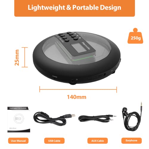 Leggero e facile da usare: perfetto lettore CD portatile per bambini, adulti e anziani per ascoltare musica o audiolibri. Pesa solo 250 g, abbastanza piccolo da essere tenuto in mano, mettere in tasca o mettere ovunque in macchina. TUTTI i prodotti Hernido offrono 18 mesi di gara