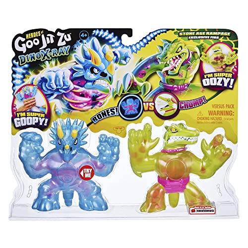 Heroes of Goo Jit Zu - Bandai - CO41193 - Confezione da 2 statuette Dino X Ray Triptops vs Shredz allungabile e stravagante