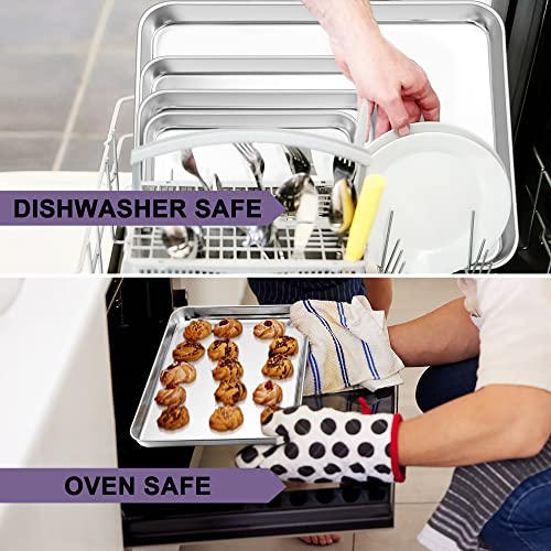 Herogo Set di 4 teglie da forno in acciaio inossidabile, set di teglie da forno professionali, per casa, ristorante, hotel, atossico e finitura a specchio, lavabile in lavastoviglie, argento