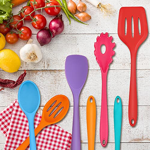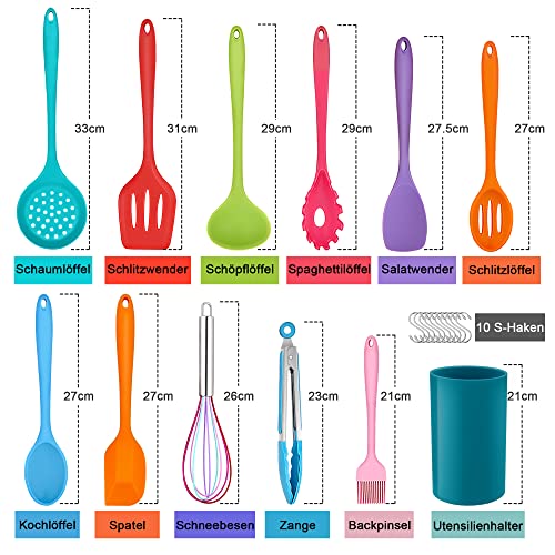 Pratico utensile da cucina: il set di 22 utensili da cucina professionali in silicone include 1 cucchiaio per schiumarola, 1 paletta a fessura, 1 mestolo, 1 server per pasta, 1 paletta per insalata, 1 cucchiaio a fessura, 1 cucchiaio da cucina, 1 spatola, 1 frusta, 1 pinza, 1 spazzola, 1 porta utensili, 10 x gancio, un pratico cuoco Il set di utensili soddisfa tutti i tipi di esigenze quotidiane in cucina