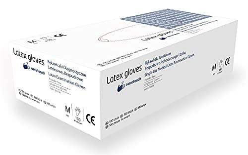 HeroTouch, Guanti in lattice medico, taglia M, 100 pezzi, bianco, guanti medici usa e getta senza polvere, scatola di distribuzione, guanti per procedure cosmetiche, per la pulizia e la cucina