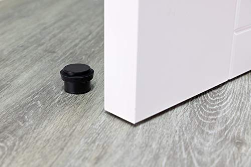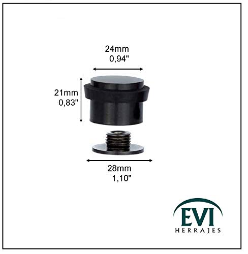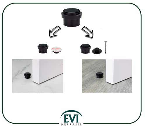 EVI Herrajes | Fermaporta Adesivo | 28 x 20 mm | Base filettata | Gomma Nera|Acciaio Inoxe Laccato Nero | Compresi utensile, vite + tassello di fissaggio | Mod. I-191/24x19-DUAL-NG