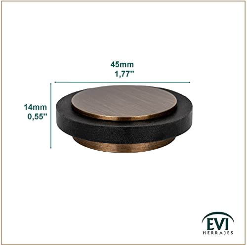 EVI Herrajes | Fermaporta Adesivo | 45 x 14 mm | Gomma Nera di Silicone Naturale | Ottone | Finitura Pelle Invecchiata | Ottima adesione | 100% funzionale | Mod. I-20335X12CU