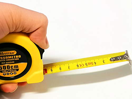 Herran Flessometro da 5 Metri -Metro a Nastro 5mt x 19mm Clip per Cintura, Gancio Magnetico, Pesa=155 Grammi