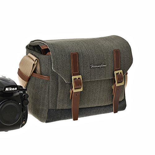 Herringbone Ultima Borsa Tracolla Custodia Messenger con Fodera per Macchine Fotografiche Reflex DSLR per Canon Sony Nikon Canon Olympus H1001 Olive