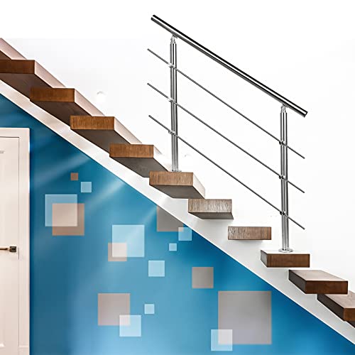 Herrselsam Corrimano in acciaio inox per scale, Ringhiera 150cm 3 traverse, per scale ringhiera balcone, Interno esterno corrimano da parete parapetto
