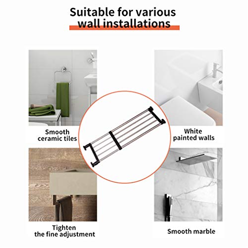 Facile da installare: nessun attrezzo richiesto, nessun danno alla parete decorativa, si regola alla lunghezza desiderata all'interno della gamma espandibile, quindi estendere la lunghezza adatta, quindi stringere la vite, infine regolare i piedini di regolazione fine, scuotere il prodotto e confermare che è fissato, basta selezionare lati forti, come piastrelle, pareti, armadi, ecc.