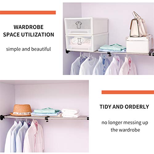 Lunghezza regolabile: telescopico a 5 tubi, adatto per riporre asciugamani, vestiti, scatole, cappelli e così via, per appendere vestiti, camicie, abiti, giacche, cravatte, sciarpe, ecc. #0778-4-BK e #0778-5BK serie con un distanziale trasparente, possono essere collocati piccoli oggetti. Nota: la piastra sul prodotto è trasparente.