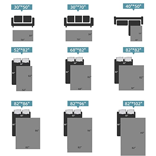 -9 MISURE PER MOBILI MULTIPLI: Forniamo coperte di 9 taglie tra cui scegliere, adatte a tutti i tipi di mobili, in particolare divani e letti. Si prega di prendere le misure corrette dei vostri mobili. Può essere utilizzato anche come copridivano e tappetino da picnic all'aperto. Con il suo design elegante e la sua pratica funzione, la nostra coperta impermeabile è un accessorio indispensabile per ogni casa.