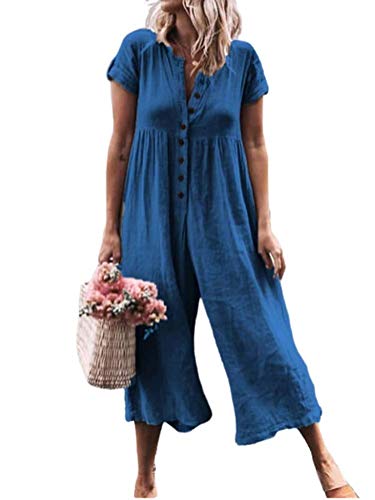 ★ Caratteristiche: tinta unita, vestibilità larga, vita alta, manica corta, da donna, casual, con bottoni, pantaloni larghi da donna, tute da donna, tuta estiva da donna, tuta da donna, tuta in lino.