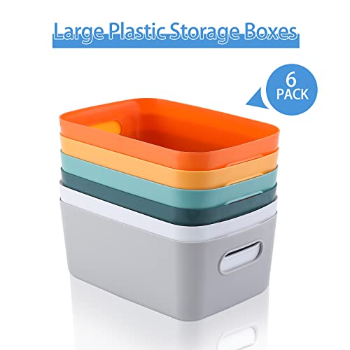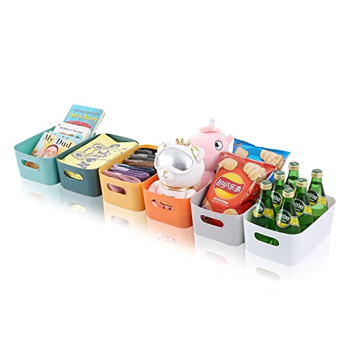 HERYEBING Cestino Portaoggetti Plastica, 6 Pezzi Scatole Portaoggetti, Cesti in Plastica con Manico per Scaffale di Cucina, Bagno, Ufficio, Armadio 25x17x10 cm (6 Colori)