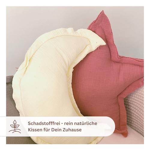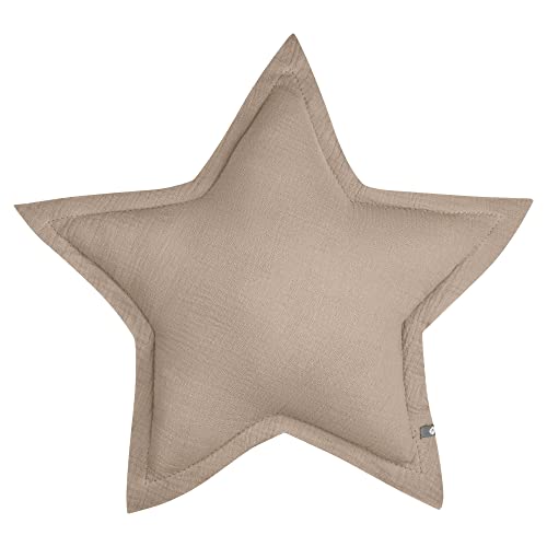 Von Herzen Cuscino in mussola fatto a mano, in 100% cotone, per bambini, cuscino decorativo in mussola a forma di stella, per cameretta dei bambini e letto, cuscino cucito a mano con ovatta (tortora)