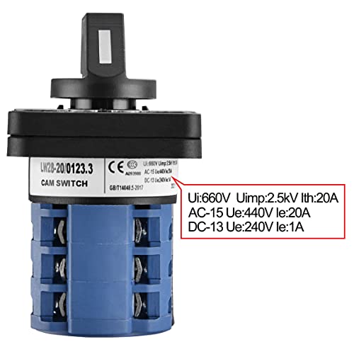 Heschen Commutatore di commutazione selettore a camma rotante universale, LW28-20/0123.3, 660V 20A, 4 posizioni, 3 fase, 12 terminali, CE