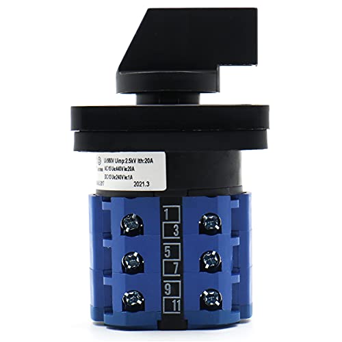 Heschen Commutatore selettore universale per camma rotante, SZW26-20/133133.3, 660V 20A, 5 posizioni, 3 fasi, 12 terminali, CE