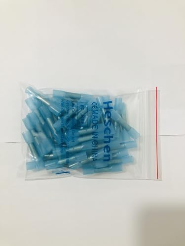 Heschen, connettore di giunzione di testa termorestringente isolato BHT2 1,5-2,5 mm² (16-14 AWG) per cavo elettrico a crimpare, confezione da 50 pezzi, colore: blu