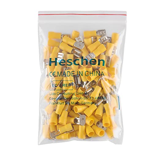 Heschen Disconnetti rapidi maschio/femmina isolati in vinile, FDD-MDD5.5-250, terminale per cavi da 6,3 x 0,8 mm, per 4-6 mm² (12-10 AWG), giallo, confezione da 100