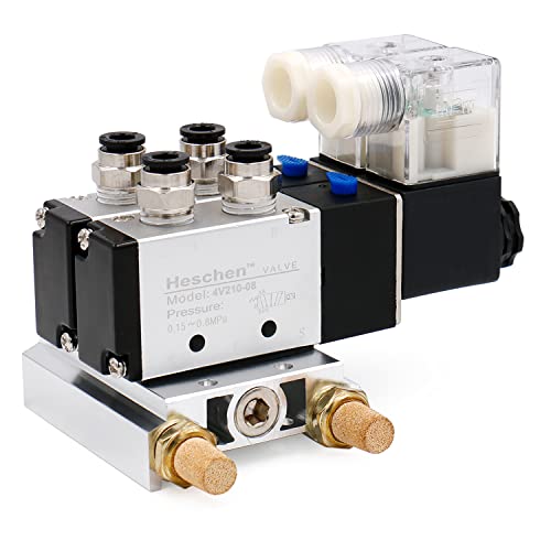 Heschen Elettrovalvola pneumatica doppia, 4V210-08, AC24V, porta PT1/4'', 5 Vie 2 Posizioni, set di raccordi rapidi per silenziatore di base