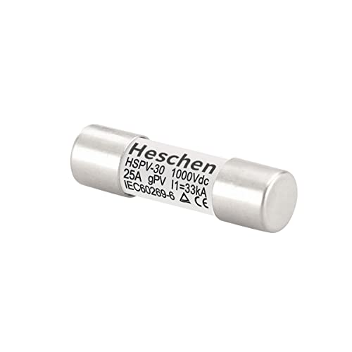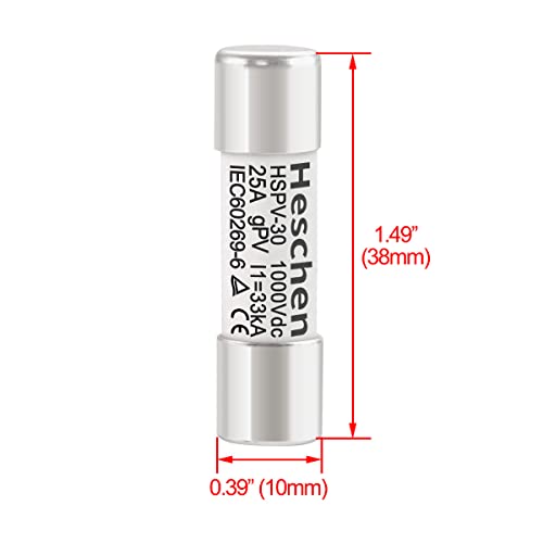 Heschen Fusibile fotovoltaico solare DC1000V, fusibili fotovoltaici, collegamento fusibile tipo gPV, HSPV-30, 10 * 38mm, 25A 1000VDC, I1 33kA, per protezione del sistema solare fotovoltaico, 10 pezzi