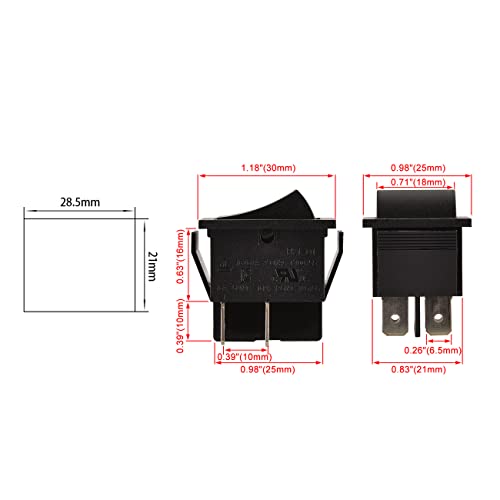 Heschen, interruttore a bilanciere, acceso/spento, DPDT, 4 terminali, 16 A, 250 V CA. Colore: nero. 2 pezzi