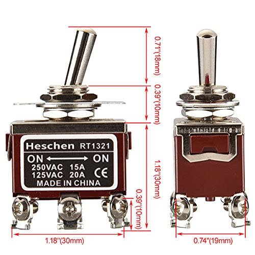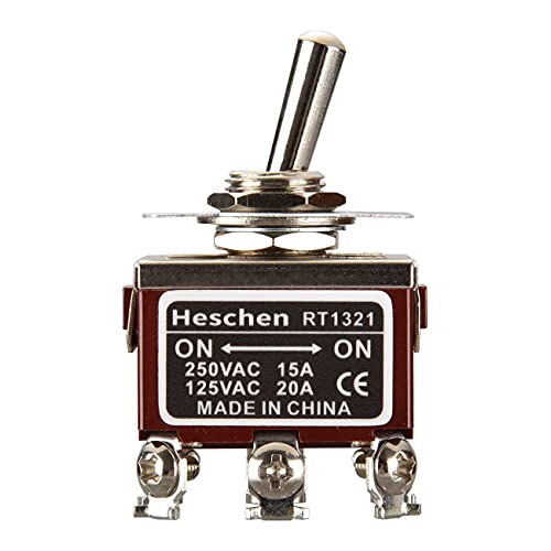 Heschen Interruttore a levetta in metallo, RT1321, DPDT, tipo mantenuto, ON/ON 2 posizioni, 15A 250VAC, CE