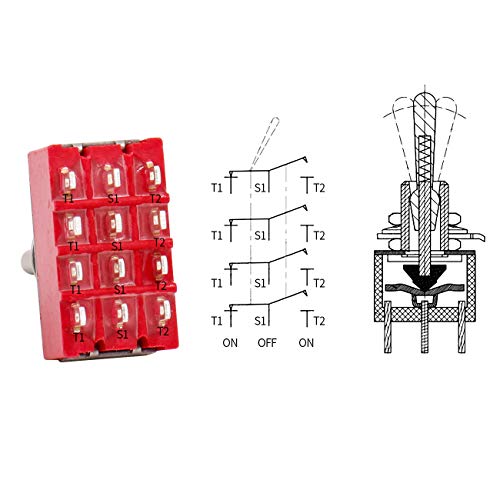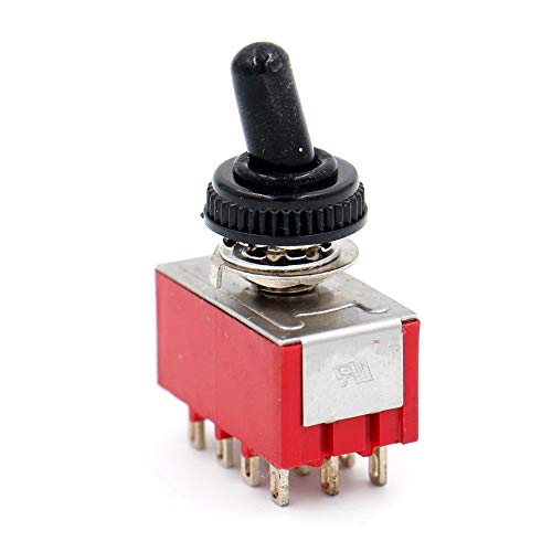 Heschen Interruttore a levetta miniaturizzato, MTS-403, ON-OFF-ON, 4PDT, 12 pin, 2 A, 250 V, 6 A, 125 V, con copertura impermeabile, confezione da 2